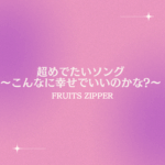2025年11月19日 / 最終更新日時 : 2025年11月19日 澤近竜佑 FRUITS ZIPPER 超めでたいソング 〜こんなに幸せでいいのかな?〜 – FRUITS ZIPPER 結婚式にぴったりの“めでたさ満点”ハッピーソング! 思わず笑顔になるようなポップなメロディーとキュートな歌詞が、披露宴を明るく楽しい雰囲気に包み込みます。おすすめのシーンは、デザートブッフェやケーキ入刀、ドレス当てクイズ。 イントロから一気に盛り上がるテンポ感と、祝福ムードたっぷりの曲調で、ゲストも自然と手拍子したくなるような賑やかなひとときを演出してくれます♪